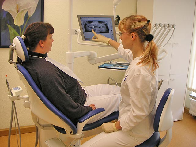 Wir untersuchen die Zähne, das Zahnfleisch, die Mundschleimhaut und das Kiefergelenk. Dabei können wir Karies, Zahnfleischerkrankungen und andere Veränderungen im Mund erkennen und über deren Ursachen aufklären. Die Behandlung ist im Anfangsstadium einer Erkrankung meist einfacher und mit geringem Aufwand verbunden. Daher erklärt sich auch das Bonussystem der Kassen. Den höchsten Bonus bei Zahnersatz bekommt man, wenn lückenlos zehn regelmäßige zahnärztliche Vorsorgeuntersuchungen (halbjährlich vor dem 18. Geburtstag, danach jährlich) nachgewiesen werden.